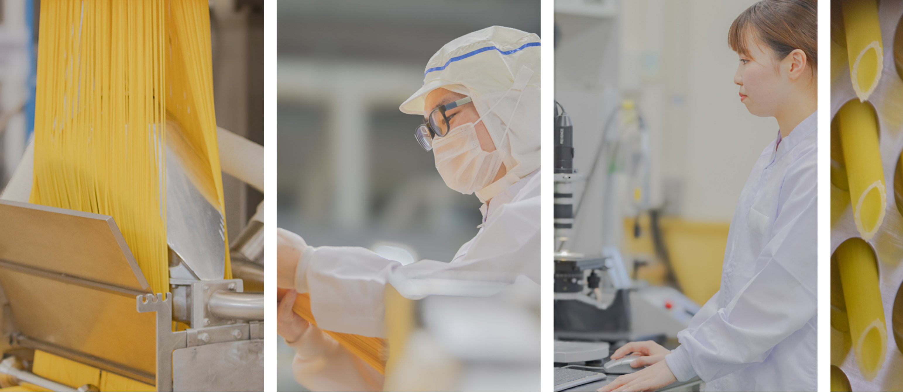 パスタは”美味にして栄養価も高い”事を捉え、これを“低廉なる価格で国民大衆に提供し、その食生活の安定を期し、この社会の安定に貢献すること″を目的に国内他社メーカーに先んじて連続生産式スパゲティ製造機を導入しました。