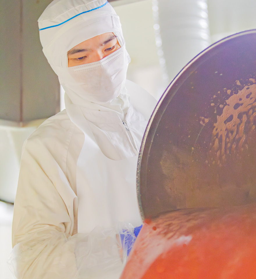 - ソース炊き作業及び品質サンプル採取と清掃準備指示